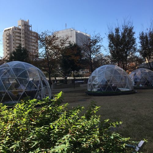 目黒川沿いのライトアップ 冬の桜この期間だけふれあい広場に出没するちょっと不思議な物体宇宙ステーションみたいじゃない?w実際はビニールでできててそんなにしっかりしたものじゃないんだけど中はエコなエネルギーで暖かくなってるらしく(透明なビニール…
